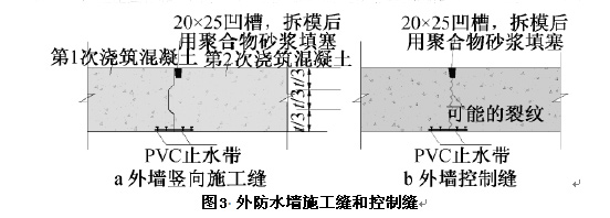 總之,通過留凹槽和剪斷水平鋼筋形成薄弱截面,通過增加止水帶來加強防水。