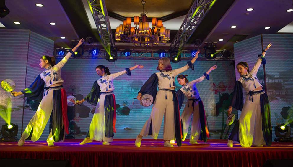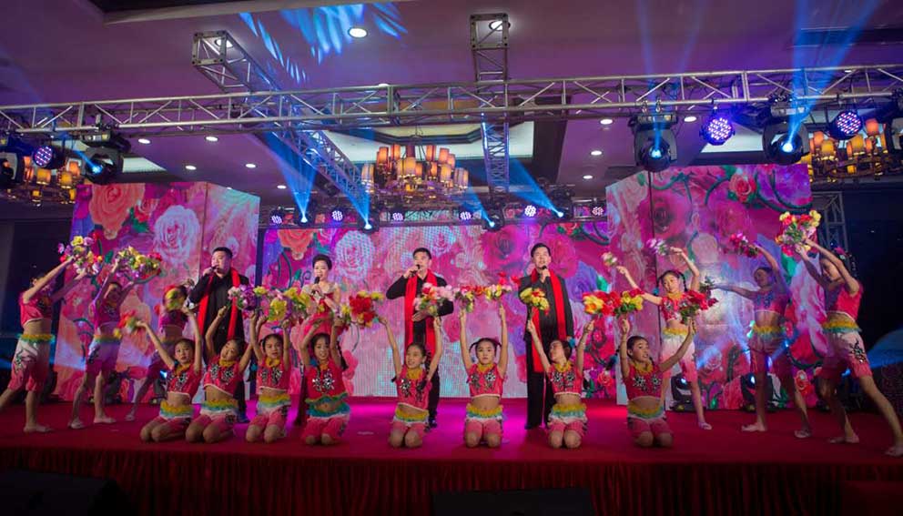 晚會(huì)現(xiàn)場(chǎng)賓朋滿座、掌聲熱烈、氣氛高昂,菜肴豐盛。來(lái)自各個(gè)部門的員工精心準(zhǔn)備的文藝節(jié)目,例如茶藝表演、青春舞蹈、小品表演、雙人舞伴古箏表演、小組合唱、現(xiàn)場(chǎng)書(shū)法表演、少兒舞蹈、歌曲合唱等精彩節(jié)目。晚會(huì)上泰國(guó)特邀嘉賓還送上精彩的舞蹈和誠(chéng)摯的新年祝福。這些節(jié)目多才多藝、精彩紛呈,為新的一年添上濃濃的喜慶色彩!