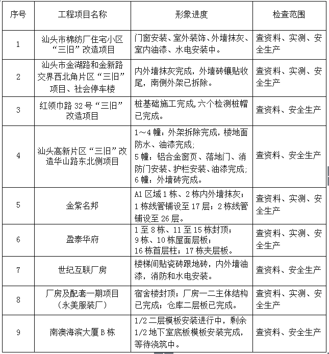 下面9個(gè)項(xiàng)目工程接受本次檢查。