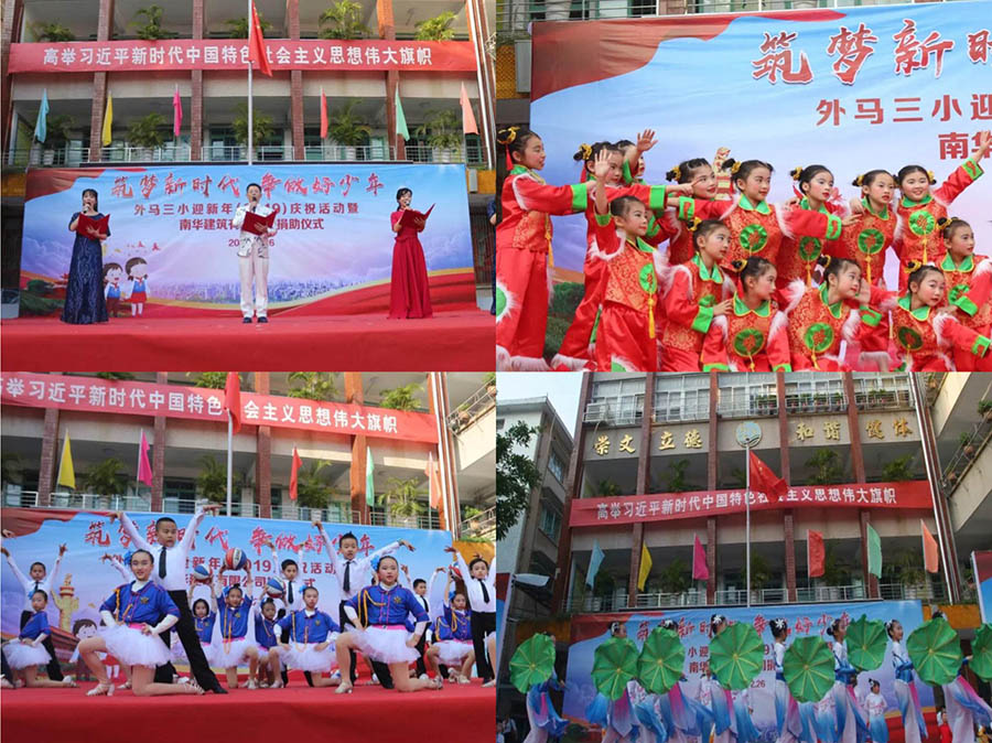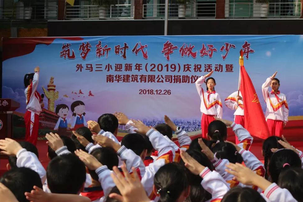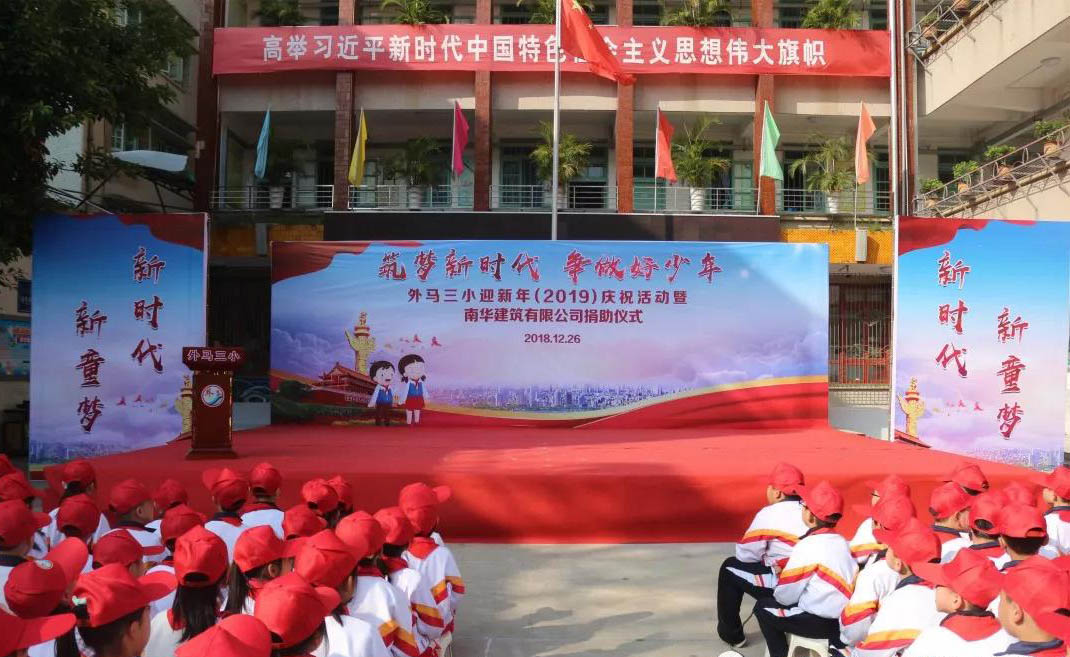 "筑夢新時代 爭做好少年"——外馬三小迎新年慶?;顒郁吣先A建筑有限公司捐助儀式
