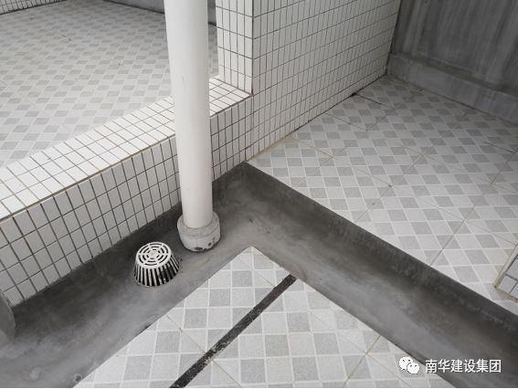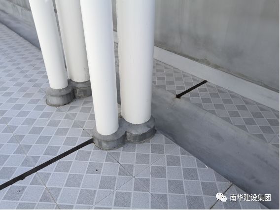 屋面隔熱磚鋪貼平整,磚縫順直,走水順暢,細(xì)部做工精細(xì);排氣管道排氣通暢、順直美觀;天溝順直、排水坡度正確,無積水。