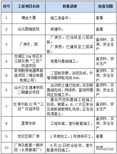 根據(jù)現(xiàn)階段工程項目形象進度,本次季度檢查對各階段項目工程檢查如下: