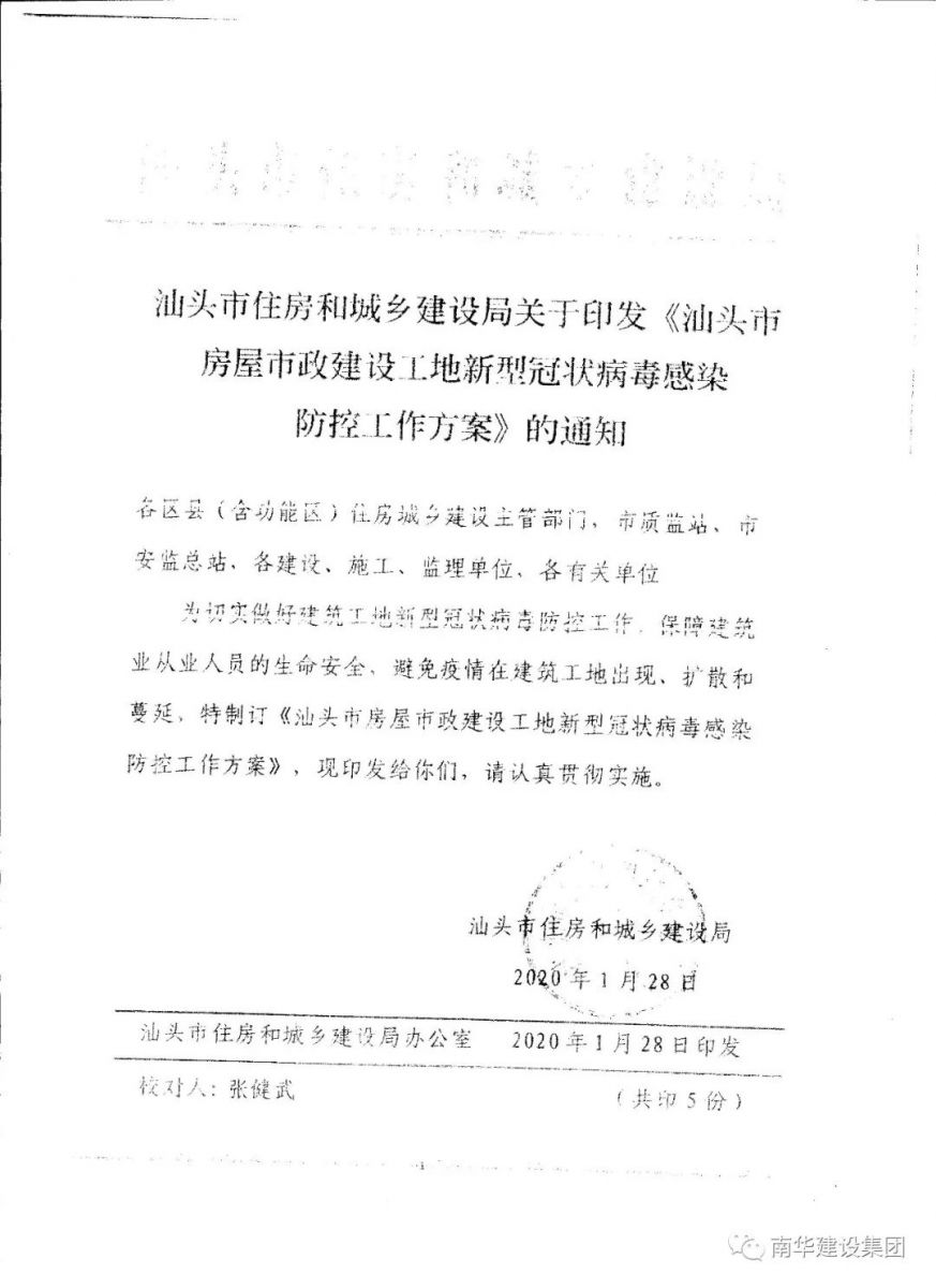 關于印發(fā)汕頭市房屋市政建設工程節(jié)后復工防控新型...>>