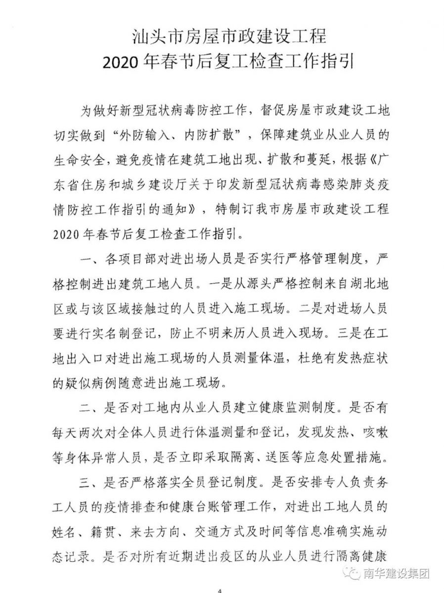關于汕頭市房屋市政建設工程節(jié)后復工有關事項的通知