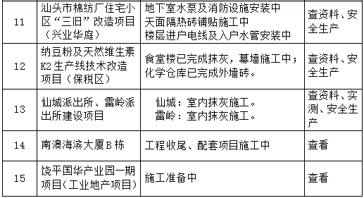 以下15個(gè)項(xiàng)目工程接受本次檢查。