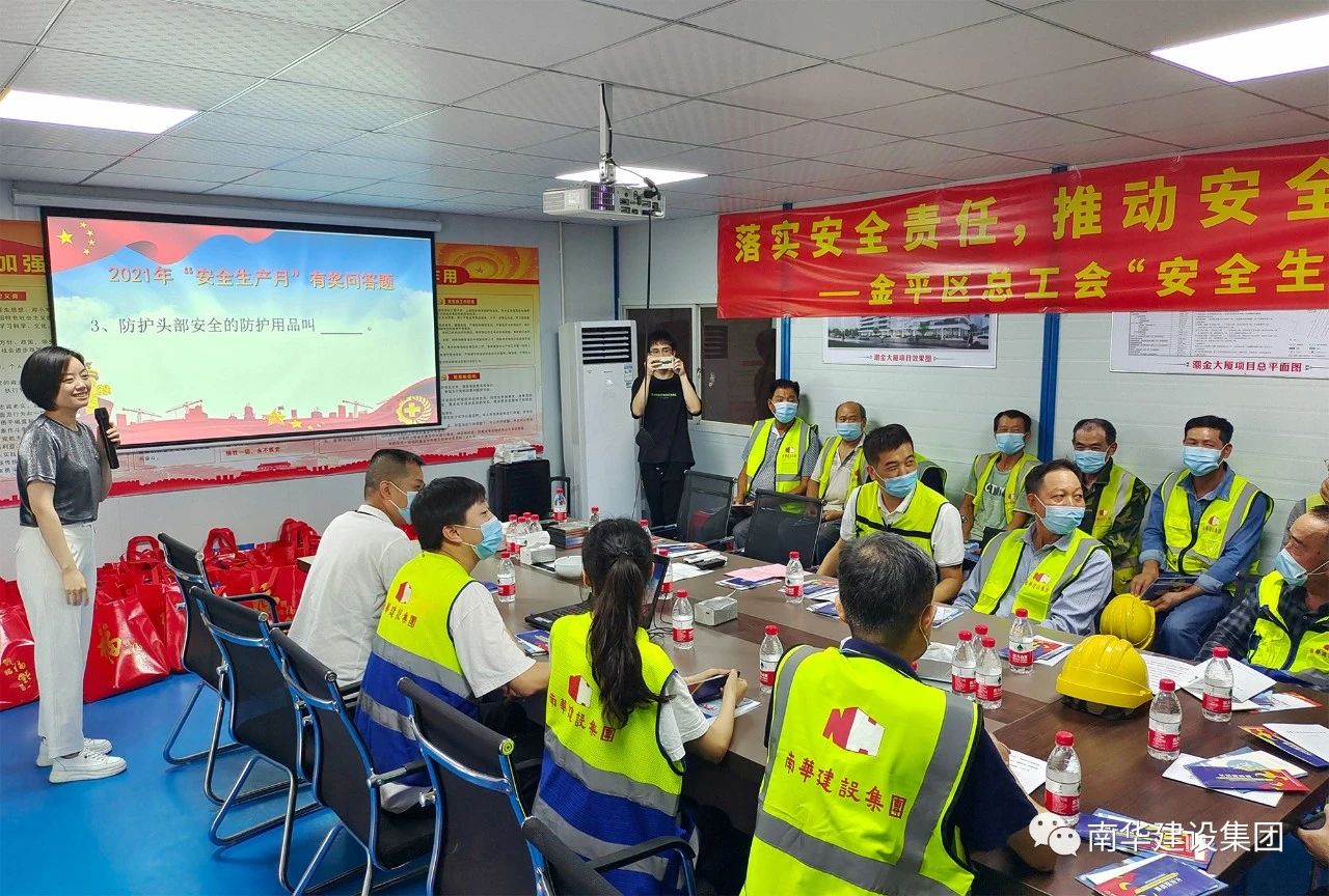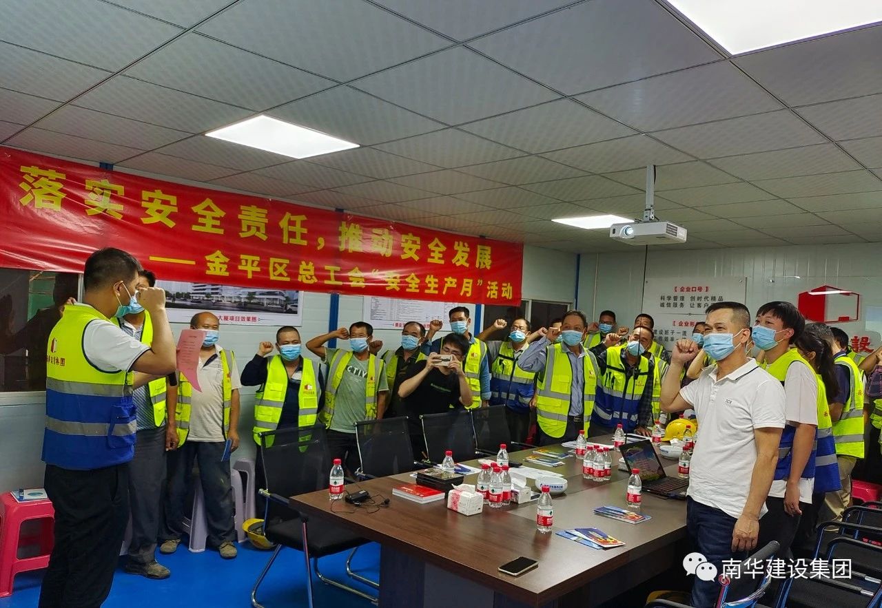 2021年6月是第20個(gè)全國(guó)“安全生產(chǎn)月”,集團(tuán)公司深入學(xué)習(xí)貫徹習(xí)近平總書記關(guān)于安全生產(chǎn)重要論述,貫徹落實(shí)黨中央、國(guó)務(wù)院關(guān)于安全生產(chǎn)重大決策部署,樹牢安全發(fā)展理念,強(qiáng)化全員安全生產(chǎn)宣傳教育培訓(xùn)工作,增強(qiáng)安全生產(chǎn)意識(shí),提升安全文明素質(zhì),堅(jiān)決防范安全生產(chǎn)事故發(fā)生。6月16日,金平區(qū)總工會(huì)以“落實(shí)安全責(zé)任,推動(dòng)安全發(fā)展”為主題,在集團(tuán)公司潮金大廈項(xiàng)目部開展2021年“安全生產(chǎn)月”活動(dòng),區(qū)工會(huì)、集團(tuán)公司工會(huì)及項(xiàng)目部管理人員、工人代表等參加活動(dòng)。