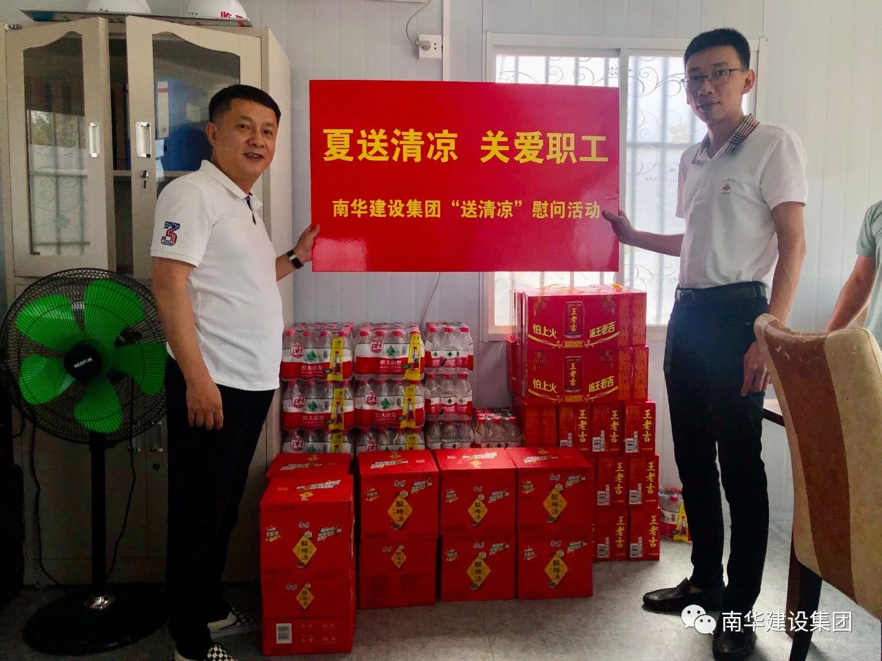 隨著氣溫不斷升高,在炎炎的酷暑下,驕陽似火的夏日中,為保障現(xiàn)場(chǎng)操作工人身體健康,確保安全生產(chǎn),集團(tuán)公司堅(jiān)持以人為本理念,認(rèn)真把一線員工的防暑降溫工作做到實(shí)處,為讓奮戰(zhàn)在工地一線的施工作業(yè)人員過一個(gè)清涼的夏天,近日,集團(tuán)公司工會(huì)組織開展“建筑工地送清涼”活動(dòng),向在建工程項(xiàng)目的施工作業(yè)人員送上涼茶等防暑降溫物品,給在夏日里仍堅(jiān)守崗位的建設(shè)者送上絲絲涼意和關(guān)懷。