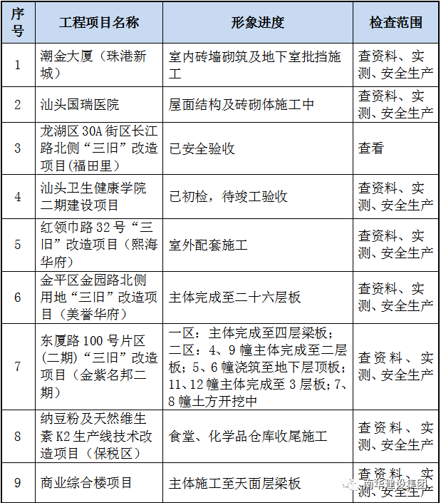 根據(jù)現(xiàn)階段工程項(xiàng)目形象進(jìn)度,集團(tuán)公司將開展在建工程項(xiàng)目實(shí)體質(zhì)量抽查抽測(cè),進(jìn)一步強(qiáng)化工程實(shí)體質(zhì)量監(jiān)管。