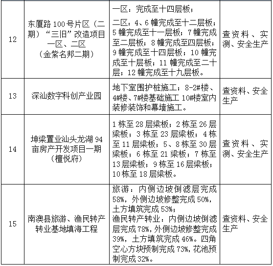 以下15個(gè)項(xiàng)目工程接受本次檢查。