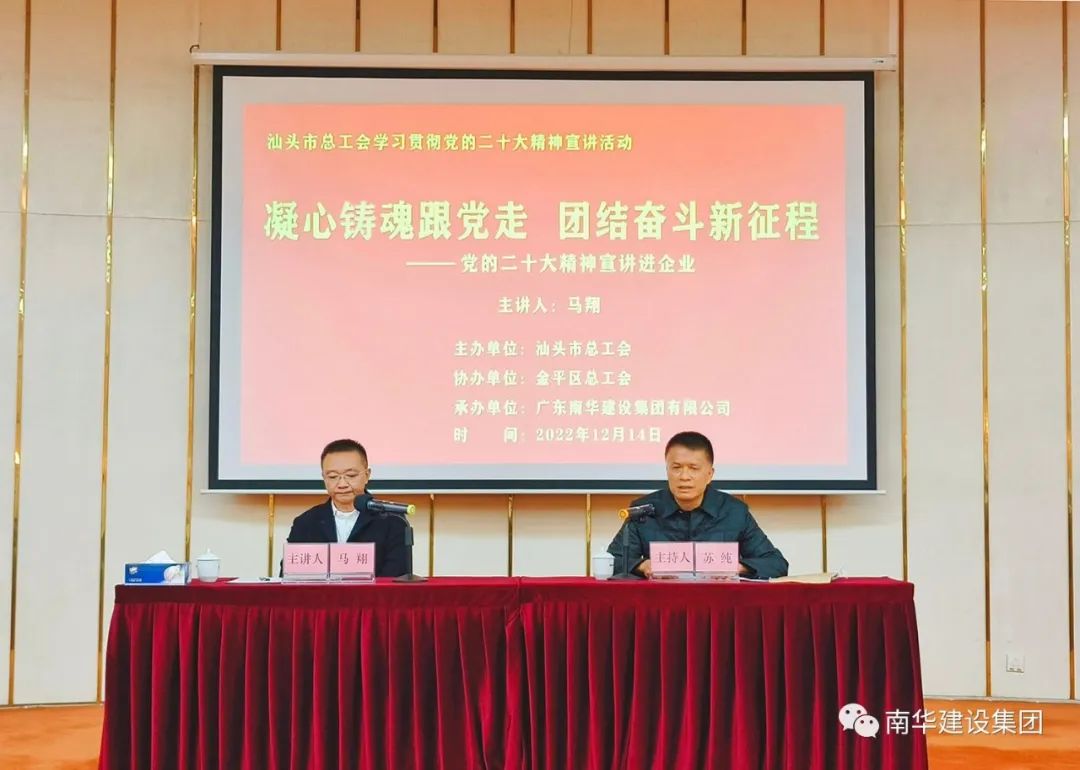 為全面深入學(xué)習(xí)宣傳貫徹黨的二十大精神,向職工宣傳好、闡釋好黨的二十大精神,更好地引導(dǎo)職工把思想和行動統(tǒng)一到黨的二十大精神上來,把智慧和力量凝聚到落實黨的二十大各項目標(biāo)任務(wù)上來。12月14日,由市總工會主辦、區(qū)總工會協(xié)辦、集團公司承辦,在集團公司開展“凝心鑄魂跟黨走 團結(jié)奮斗新征程”黨的二十大精神主題宣講會。