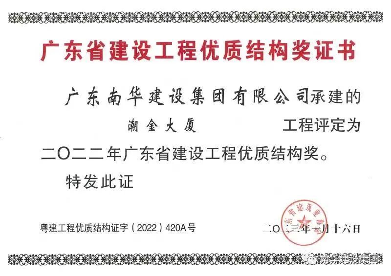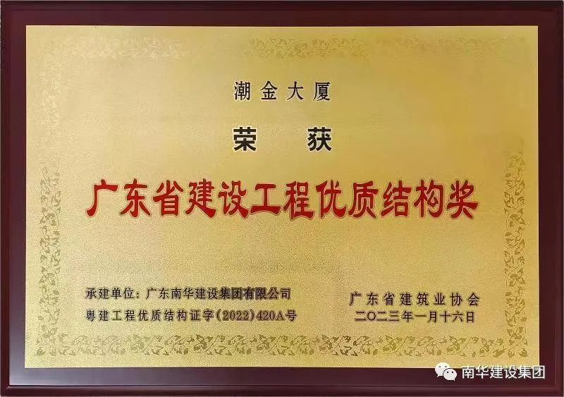喜訊!潮金大廈榮獲“廣東省建設工程優(yōu)質(zhì)結(jié)構(gòu)獎”