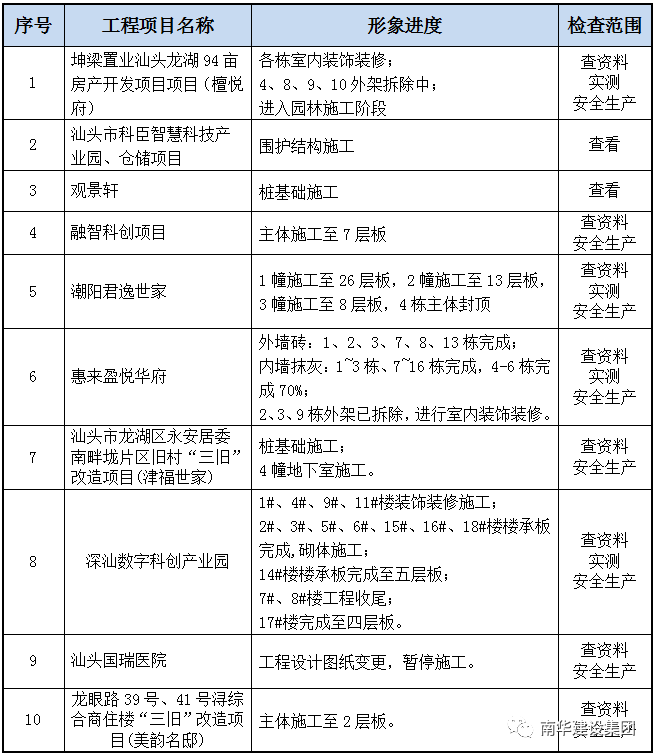 以下10個(gè)項(xiàng)目工程接受本次檢查。
