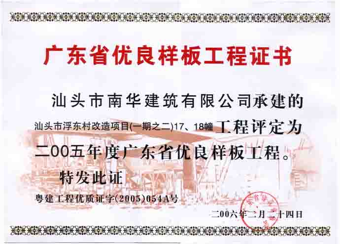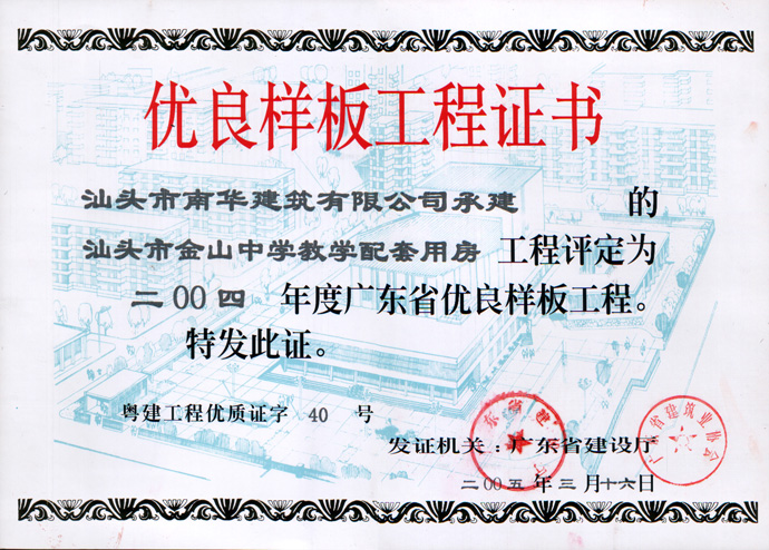 下蓬中學(xué)擴(kuò)建教學(xué)樓省樣板證書