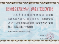 汕頭深水港省雙優(yōu)工地證書