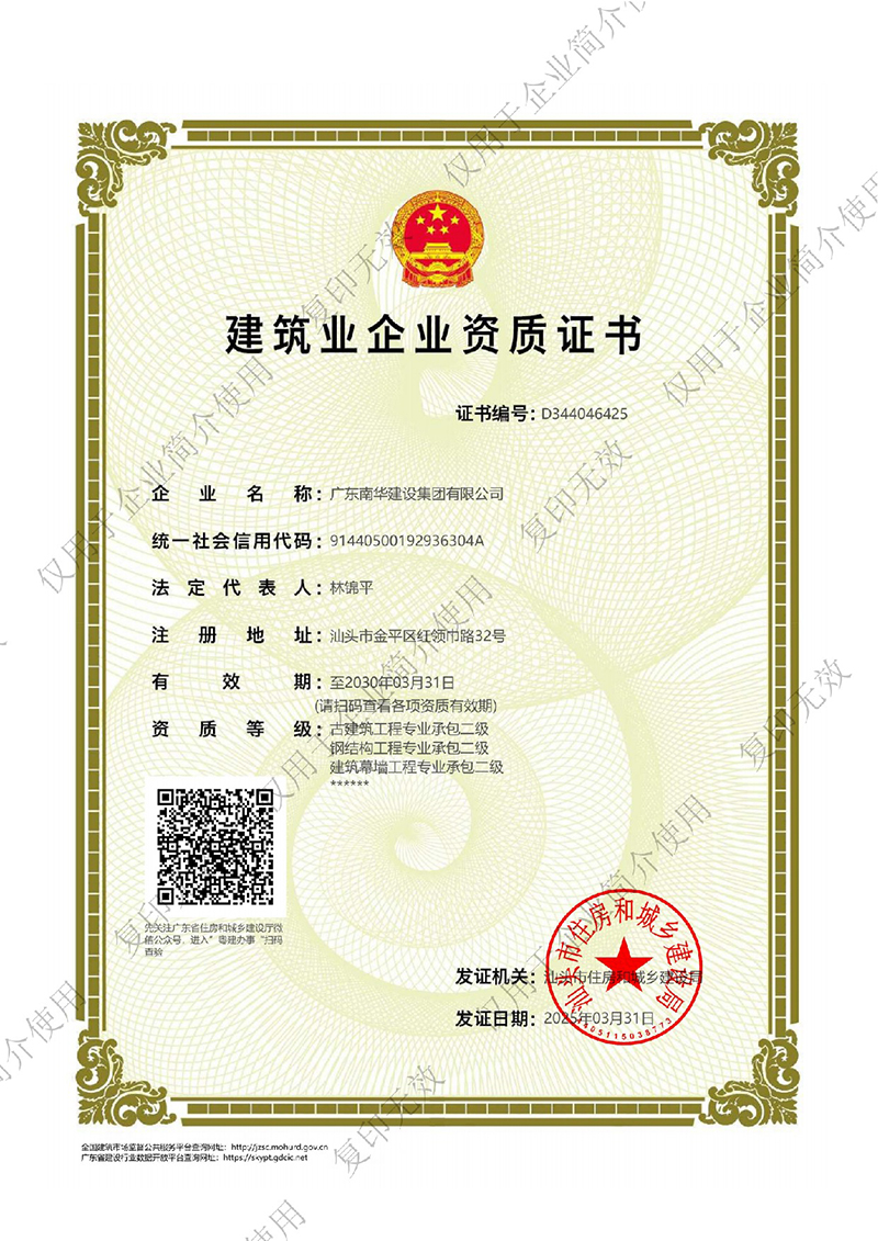 建筑業(yè)企業(yè)資質(zhì)證書(shū)(副本)