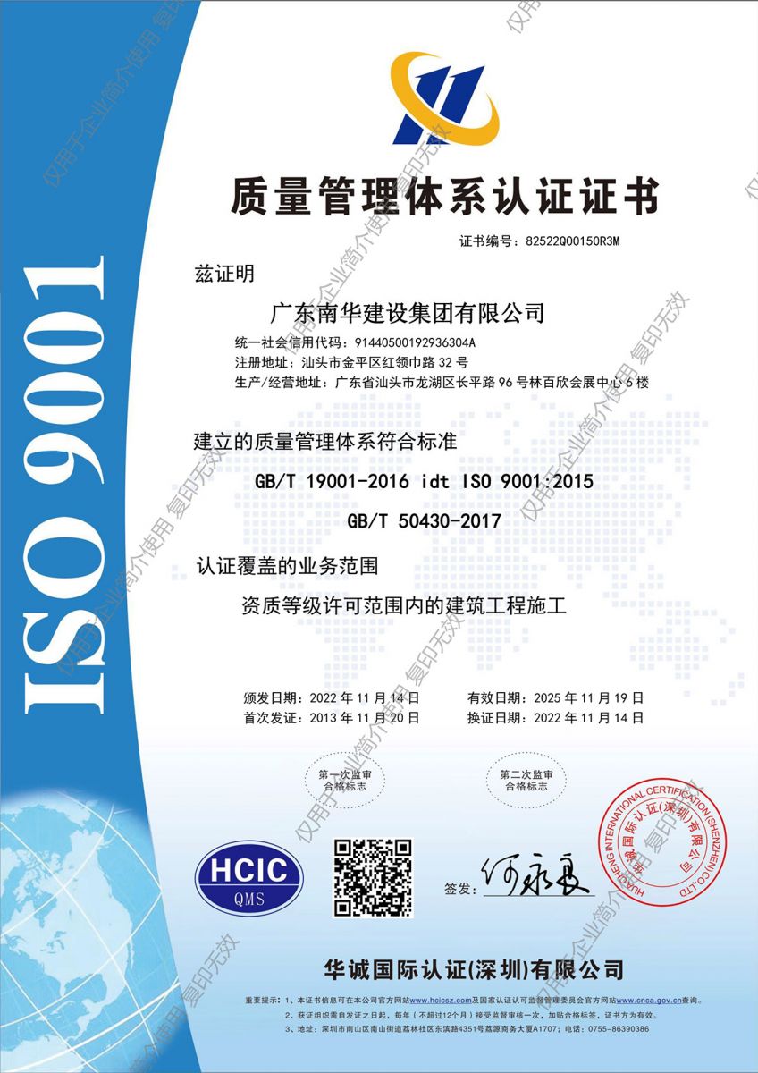 COPYRIGHT ? 2019廣東南華建設(shè)集團(tuán)有限公司 ALL RIGHTS RESERVED.