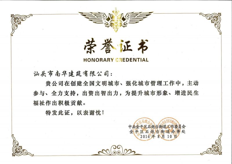 公司創(chuàng)文榮譽證書