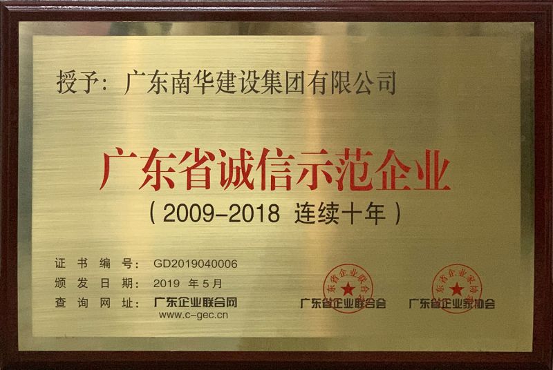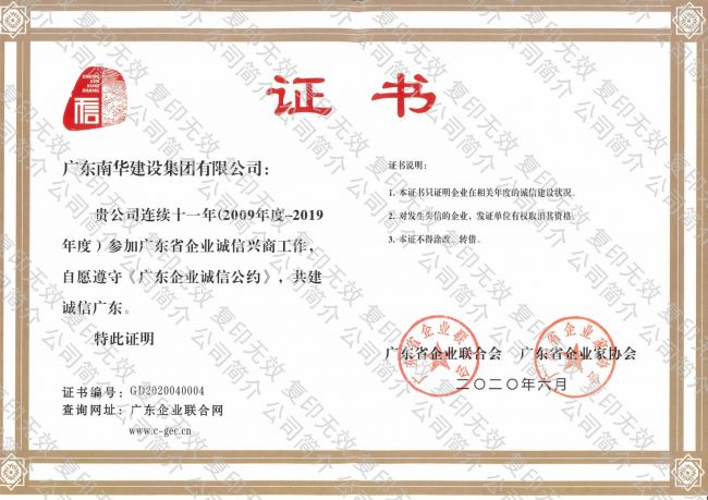 廣東省連續(xù)十年誠信示...
